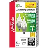 I've been looking for LED lights for my outdoor lamppost with candelabra base and put off sufficient light. This is the right product. Three bulbs using 12w is less than CFL bulbs and should last longer. We will see if that's true.Best Deals for Sunbeam Enviro-Bulb High Performance Chandelier LED Bulb, 4 Watts