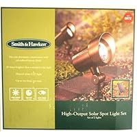 I wanted to keep my Flag out all night, but didn't have the $$ and time to hard-wire some spots for proper illumination. After a quick search on Amazon, found these and decided to give them a try. Can't really complain, but to call them a "spot" light is being generous. These put out no more illumination than a cheap LED flashlight. The fact that you're running two lights off of just two AA rechargeable batteries also means you don't get many hours of light. They fade to black after about six hours; not enough to keep my Flag out the entire night. However, I like the sturdy construction of the material. These puppies were made to last! The solar panel itself is only plastic, so you need place it somewhere out of the way. And it doesn't take much light to recharge the system; even on cloudy days you get enough to power both lights for a few hours. I've noticed some condensation in one of the lights, but that doesn't seem to have affected it's performance. Overall I'm happy, but I think I will have to install low-voltage lights anyway.Best Deals for Smith & Hawken® 2 Pack Solar Spotlights - Oil Rubbed Bronze