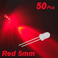 Discount Amico 50 Pcs 5mm Diameter Round Head Red Light LED Lamp Emitting