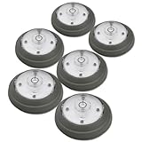 Love the puck lights under my kitchen cabinets! They provide enough light for the dark areas under my Kitchen cabinets. I'm happy because I can direct the light straight down, on the wall, or on the countertop. I put up 9 puck lights, however, 3 of them fell down the next day. They come with sticky tape and velcro. The sticky tape on 3 of the lights failed, so I purchased double-sided tape to secure the lights. Overall, I'm please with the lights. Very easy to install and add that special touch of decorative lighting!Find helpful customer reviews and review ratings for Rite Lite LPL626BX 5 LED Pivot and Swivel Puck Light, Grey, 6 Pack